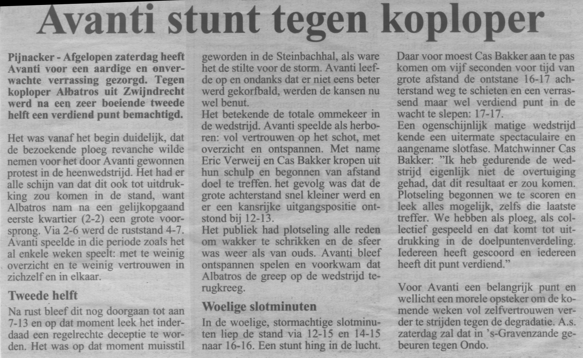 19921993 Zaal 1993/01/16 Avanti - Albatros 17-17