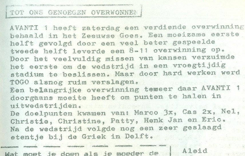 | Scores: Marco van Zielst(3) Cas Bakker(2) Christine de Vogel(1) Christie van Wijk(1) Eric Verwey(1) Patty Mulder(1) Henk Jan Post(1) Nel Rensen-van Wijk(1)