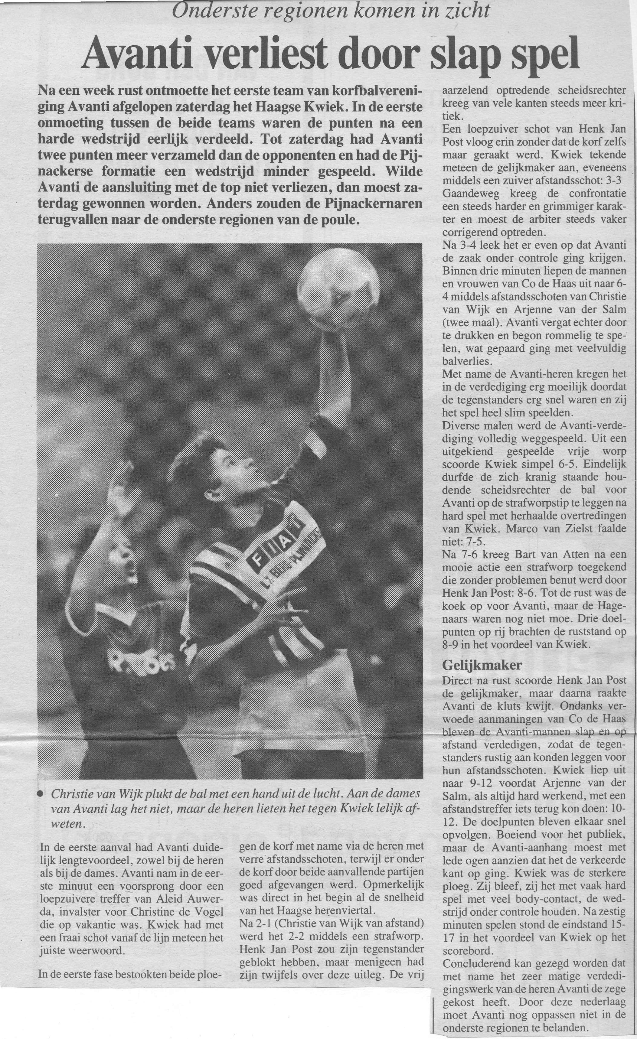 39' Afstand (3e doelpunt)Arjenne van der Zalm(10 - 12) 38' Niet bekend Kwiek(9 - 12) 37' Niet bekend Kwiek(9 - 11) 36' Niet bekend Kwiek(9 - 10) 35' Niet bekend (3e doelpunt)Henk Jan Post(9 - 9) 17' Niet bekend Kwiek(8 - 9) 16' Niet bekend Kwiek(8 - 8) 15' Niet bekend Kwiek(8 - 7) 14' Strafworp (2e doelpunt)Henk Jan Post(8 - 6) 13' Niet bekend Kwiek(7 - 6) 12' Strafworp Marco van Zielst(7 - 5) 11' Vrije Bal Kwiek(6 - 5)